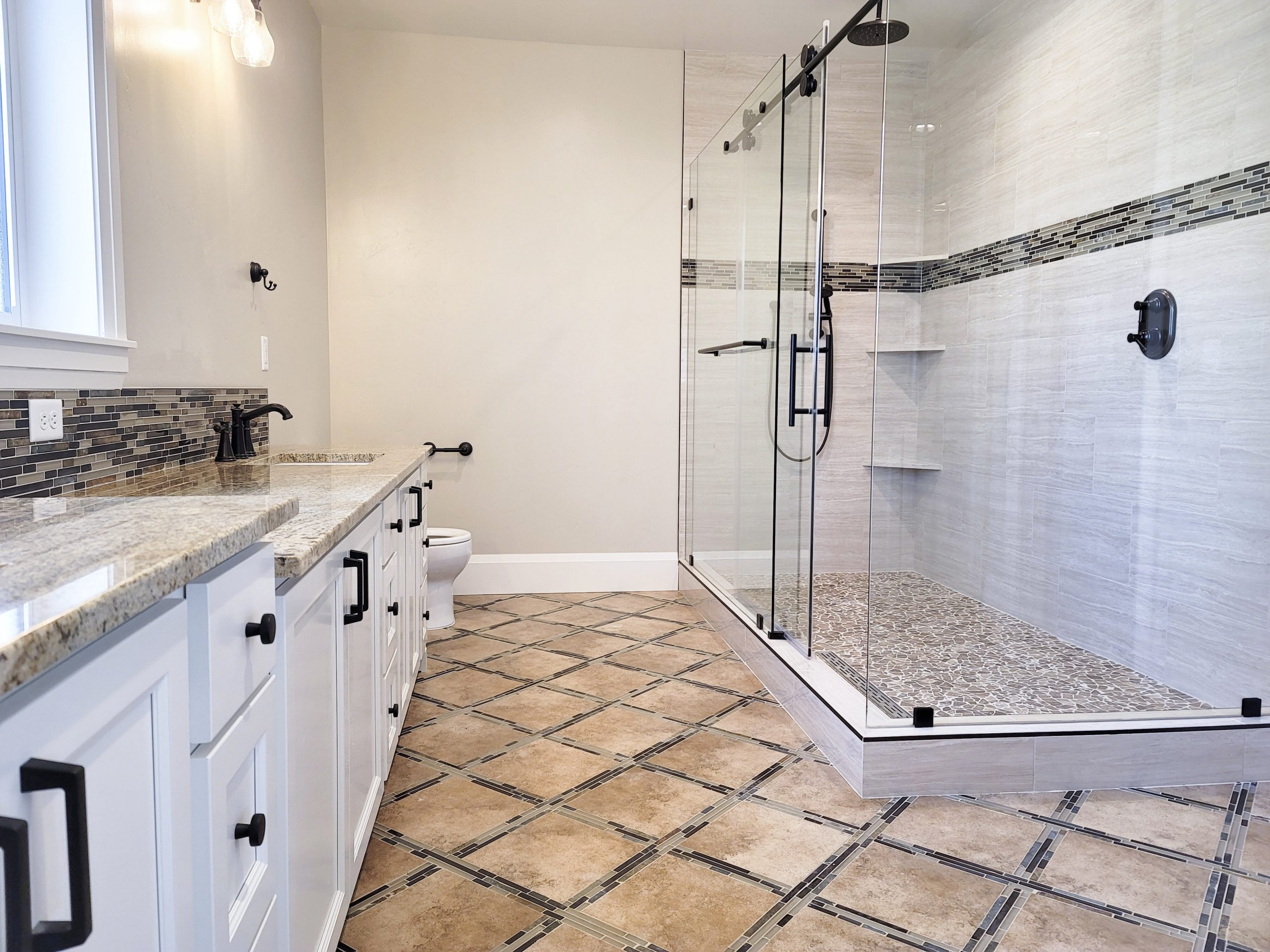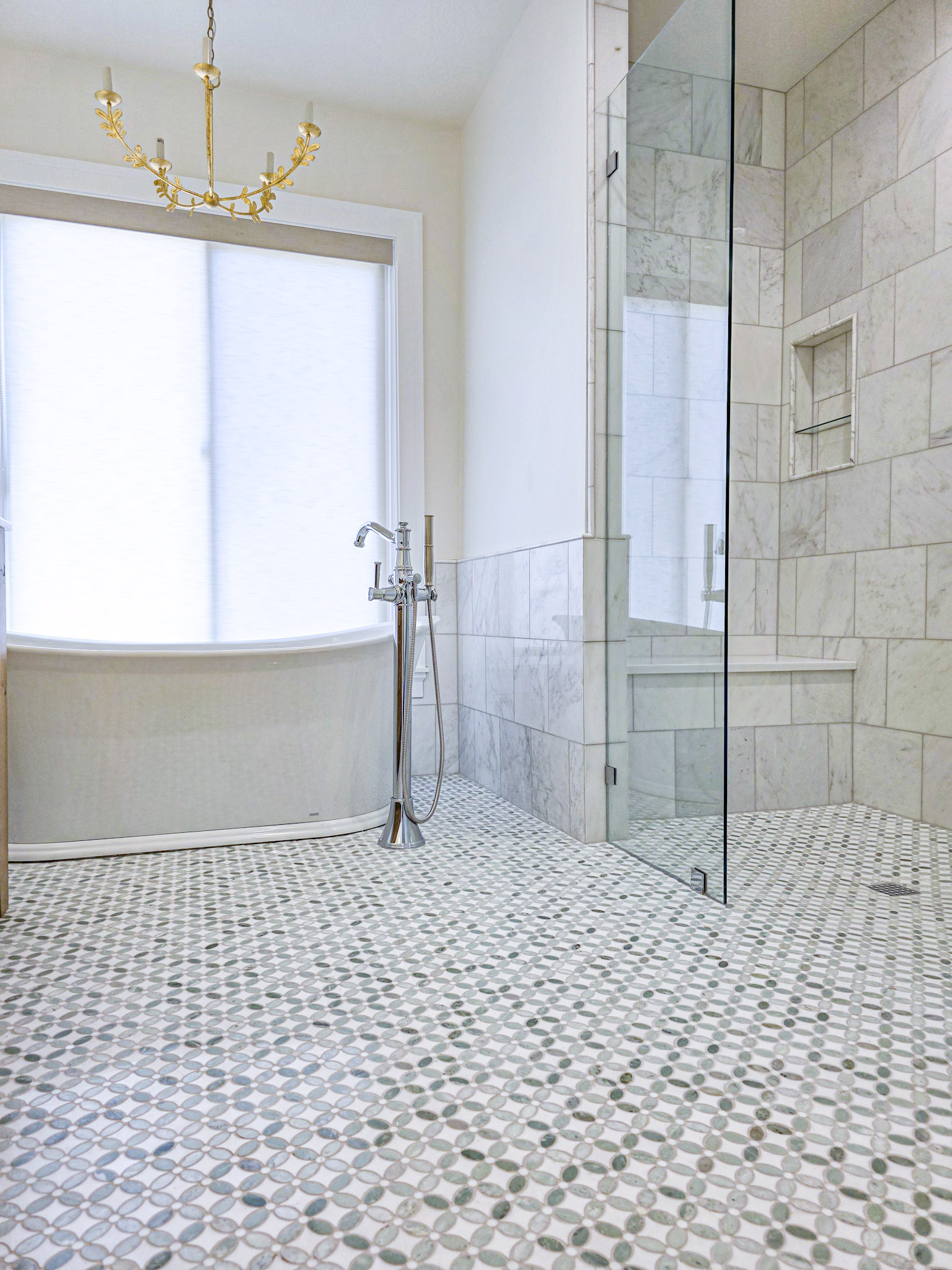- Mosaic tile in the shower pan
