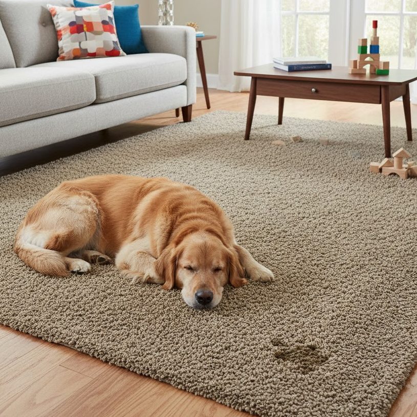 Durability – The looped construction can snag if caught by sharp objects (like a pet’s claw or a dropped tool, though snag-resistant finishes are common).