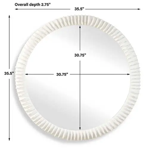 The Akiko Round Mirror adds a touch of nautical beauty with its exquisitely carved matte white ruffles that resemble flowing waves on a high-fired ceramic base.