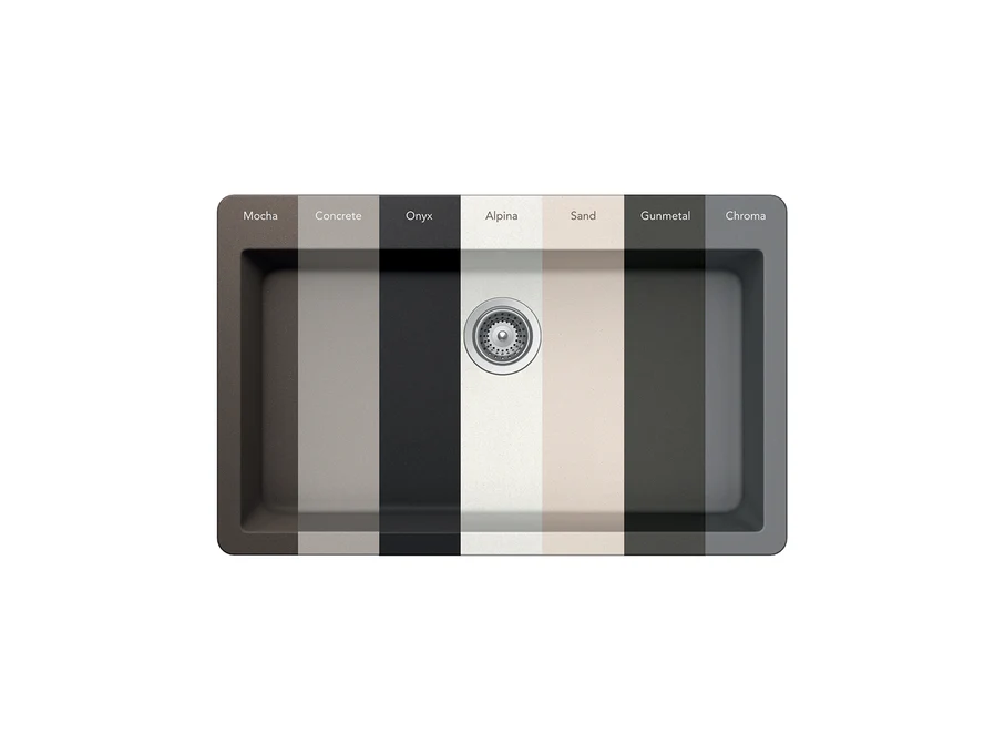 The Crystallite Series PL-100 Granite Composite Single Bowl Sink combines exceptional durability and style, crafted with 85% natural quartz—the hardest element of granite—blended with premium acrylic binders. Designed in Germany, these sinks reflect top-tier quality and eco-conscious craftsmanship, made from sustainable, long-lasting materials. Resistant to UV rays, scratches, stains, impacts, and heat, they deliver outstanding performance and durability.