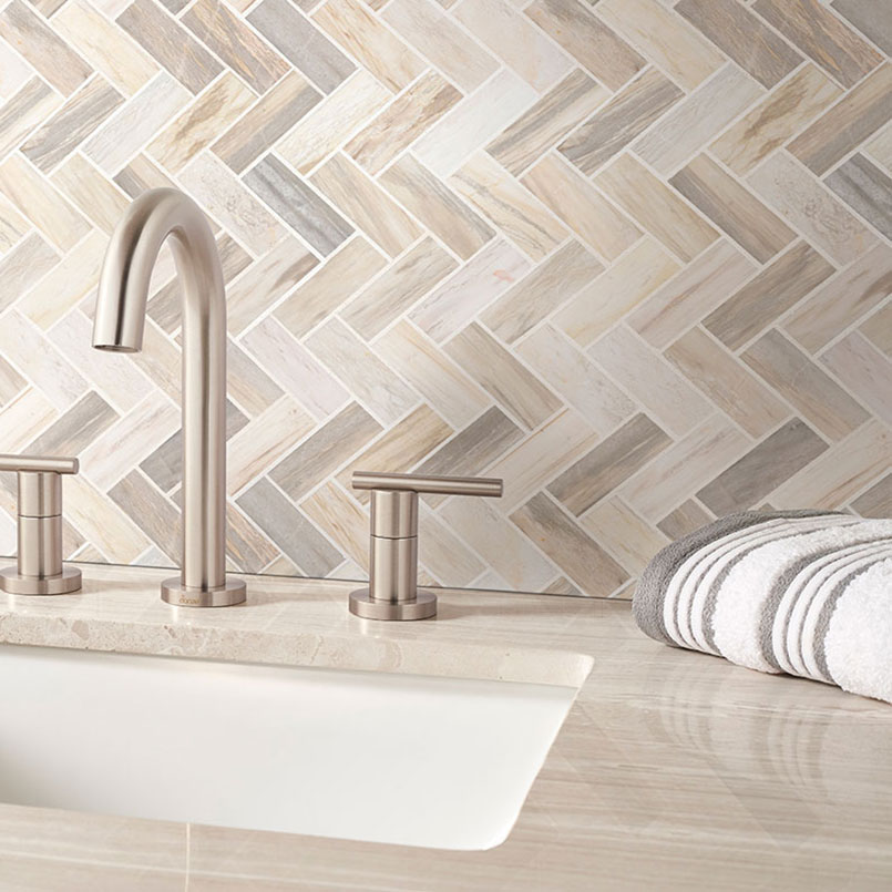 Angora Herringbone Tile form the Callacata Cressa Collection is crafted from fine natural marble. Its classic herringbone pattern is accented by soft neutral shades of beige, taupe, and cream. Each polished marble tile is unique from the next, but with darker shades blending seamlessly into softer ones, the look complements a variety of color schemes and design styles. ThisAngora Herringbone backsplash tile is suitable for a wide range of applications including floors, vanity walls, backsplashes, and other architectural features.