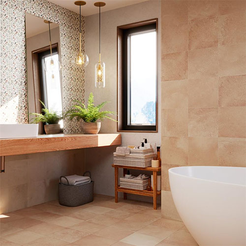 The Aspdin Cotto Porcelain Floor and Wall Tile offers a slightly textured matte finish, blending the rugged charm of natural cement-look textures with a modern, minimalist aesthetic. Ideal for both standalone use or paired with other designs, it provides a versatile and customizable option for various interior styles.