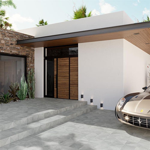 The Aspdin Rigato Grey Porcelain Tile showcases a subtle linear texture with a matte finish in a cool grey tone, offering a modern yet natural look. Its durable and impervious design makes it perfect for indoor and outdoor spaces, including kitchens and patios.