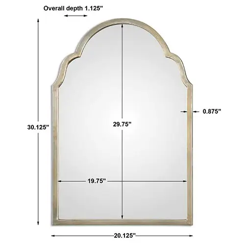 The metal frame of Brayden Petite Arch Champagne Mirror is hand-forged and has a softly aged silver champagne finish.