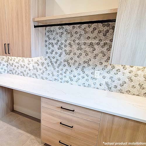 Daisy is often used in entryways, bathrooms, kitchens, and accent walls where a balance of playfulness and order is desired. It integrates easily into both minimalist and eclectic interiors, adding a layer of personality through pattern rather than color. Whether installed across a broad surface or used sparingly as a feature, the collection delivers consistency in form and longevity in function. It’s a practical option for those seeking a patterned tile that communicates design confidence without relying on loud or trendy statements.