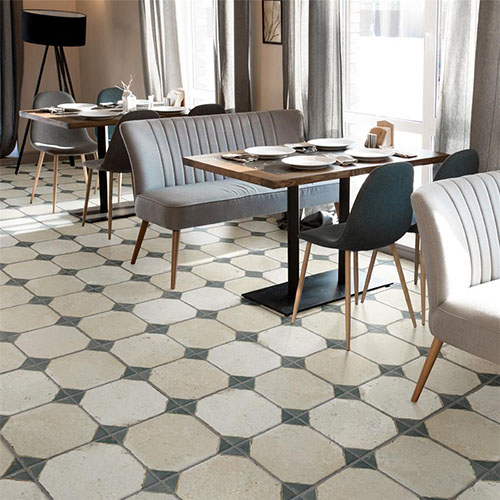 The Kings Yard Blue ceramic tile features a vibrant blue hue with intricate, vintage-inspired patterns, perfect for adding a bold, artistic flair to any room. Its durable ceramic construction makes it ideal for both walls and floors in high-traffic spaces.