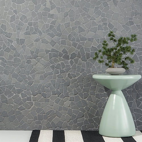 Pebblestone integrates well with wood, raw concrete, natural fiber, and metal finishes, supporting design concepts focused on biophilic integration and tactile contrast. Its modular format allows for clean transitions between surface zones and can act as either a statement texture or a neutral field depending on layout and surrounding materials.
