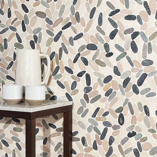 Pebblestone integrates well with wood, raw concrete, natural fiber, and metal finishes, supporting design concepts focused on biophilic integration and tactile contrast. Its modular format allows for clean transitions between surface zones and can act as either a statement texture or a neutral field depending on layout and surrounding materials.