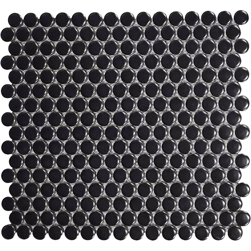 The Penny Round Black Matte mosaic offers a sleek, contemporary look with its uniform black matte finish. This versatile and durable design is perfect for adding a modern touch to any floor or wall installation.