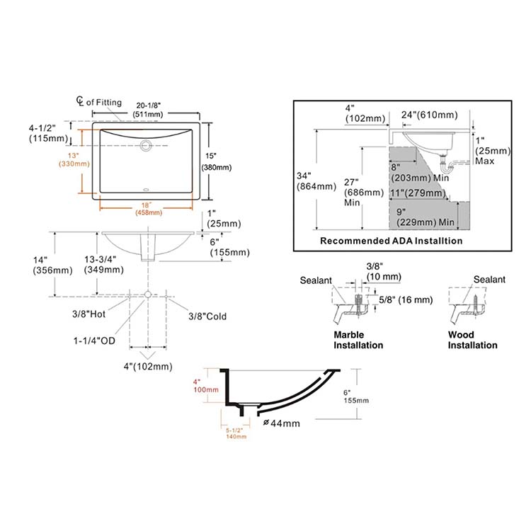 The Pearl Series PL-1634 Porcelain Undermount Sink is now available. It is made from Grade A porcelain and is coated with vitreous china for long-lasting durability. Long-lasting beauty is ensured by its glossy, scratch-resistant surface, which is produced by heating refined clay at a high temperature. Its nonporous surface inhibits the growth of bacteria, fungi, and stains. With a limited lifetime warranty, it gives your house long-lasting peace of mind.