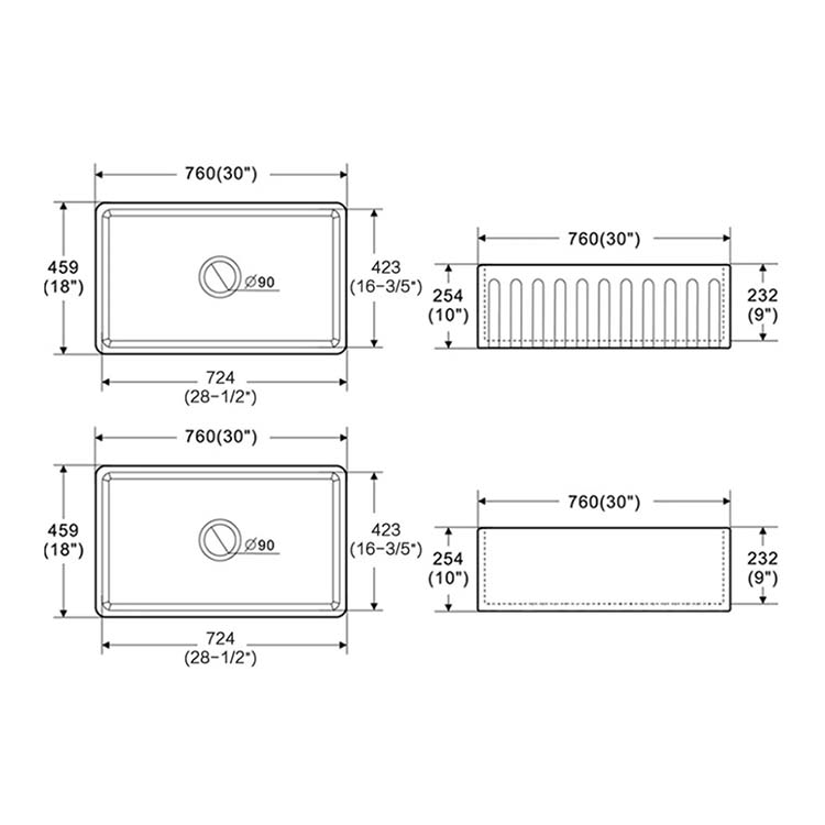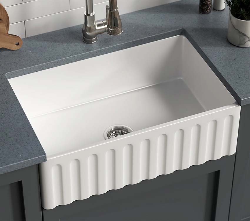 The Farmhouse Series PL-FC3018SB Reversible Farmhouse Sink is made of a durable substance that is created by heating refined clay to high temperatures, ensuring long-lasting quality. Each sink is painstakingly made by hand from a special white clay that is sourced from particular parts of the world. When fused with glaze, the material becomes nonporous, strong, dense, and heat-resistant. This sink’s reversible design adds variety to any kitchen area by providing both a flat side and a decorative theme. Its roomy, deep bowl, which embodies traditional form and functionality, is designed for heavy-duty use. The Farmhouse Series Sinks guarantee the original homeowner’s long-term happiness with a Limited Lifetime Warranty.