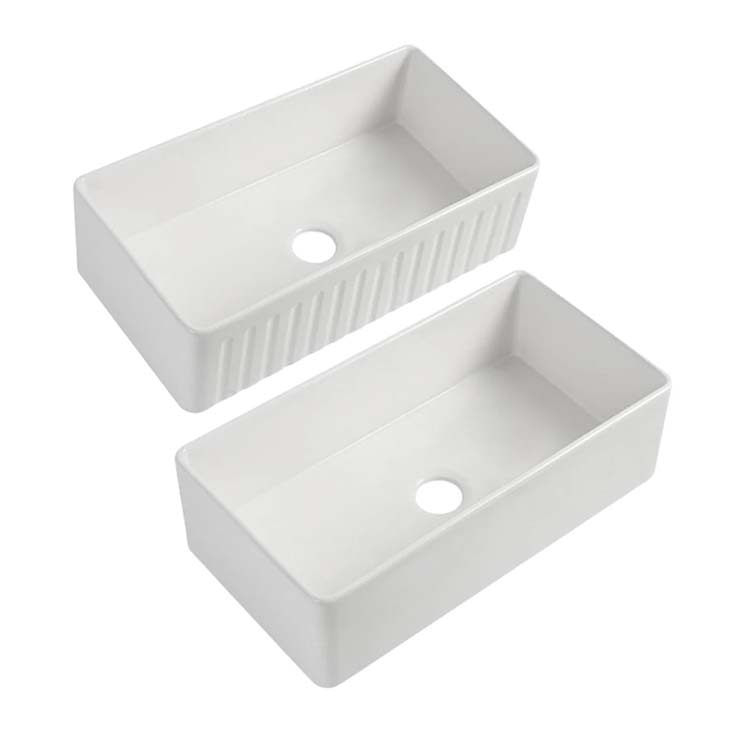The Farmhouse Series PL-FC3620SB Reversible Farmhouse Sink is made of a durable substance that is created by heating refined clay to high temperatures, ensuring long-lasting quality. Each sink is painstakingly made by hand from a special white clay that is sourced from particular parts of the world. When fused with glaze, the material becomes nonporous, strong, dense, and heat-resistant. This sink’s reversible design adds variety to any kitchen area by providing both a flat side and a decorative theme. Its roomy, deep bowl, which embodies traditional form and functionality, is designed for heavy-duty use.