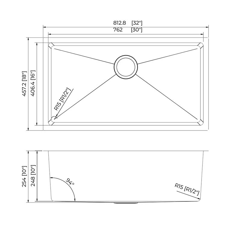 PL-GMB115 R15 16g Handmade 16 Gauge Gunmetal Black Stainless Steel Undermount Kitchen Sink with Micro Radius Corners