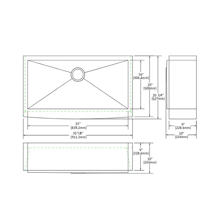 This contemporary sink is entirely handcrafted and offers the flexibility of zero degree corner radiuses, along with straight walls and an extra deep bowl, catering to diverse preferences and functional requirements. In addition to improving its visual appeal, its sophisticated satin brushed finish also hides minor dings and guarantees that it will remain shiny even after frequent use. Below the surface, sound deadening pads and our exclusive Protect Coating combine to reduce noise and stop condensation buildup, improving longevity and functionality.