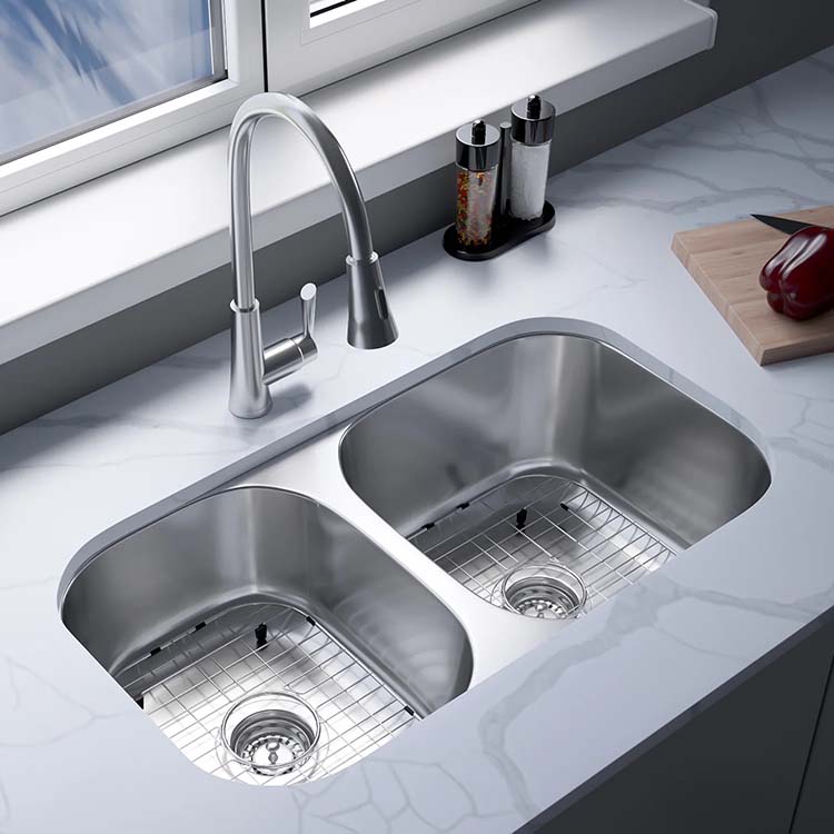 Our 304 stainless steel, which has a chromium to nickel ratio of 18:10, is one of the best options on the market since it promises outstanding strength and durability. In addition to improving the sink’s aesthetic appeal, the sophisticated satin brushed finish successfully hides small scratches that could appear with frequent use, preserving its classic shine. Our exclusive Protect Coating and sound-deadening cushions beneath the sink combine to reduce noise and stop condensation, creating a dry and peaceful atmosphere.