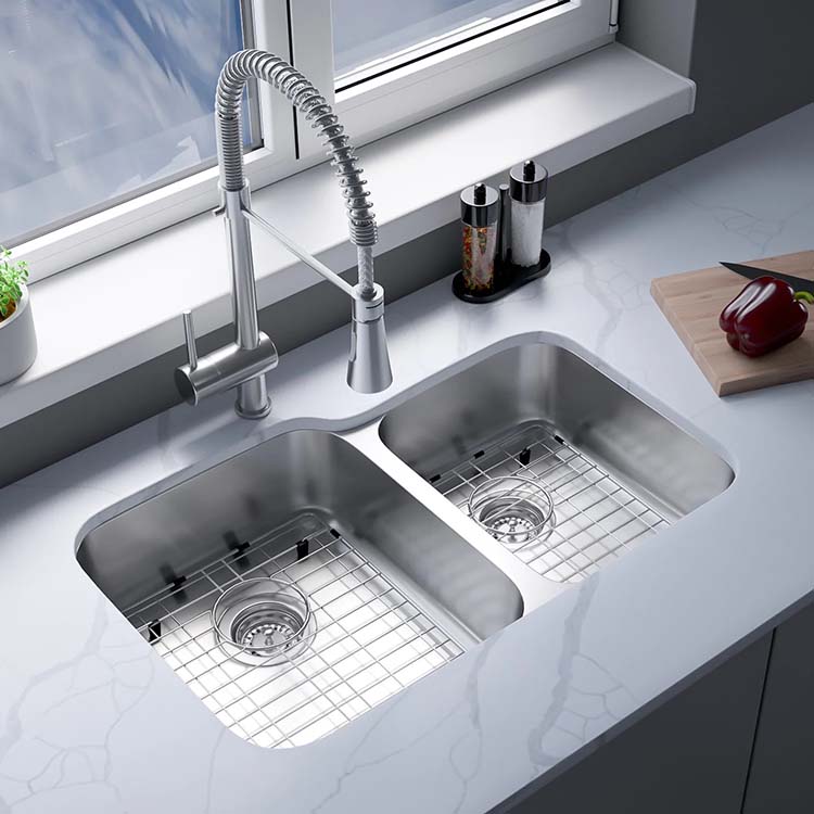 Our 304 stainless steel sink is one of the best on the market because of its unparalleled strength and durability, which come from its 18:10 chromium to nickel ratio. In addition to improving the sink’s aesthetic appeal, the sophisticated satin brushed finish successfully hides small scratches that could happen with regular usage, preserving its long-lasting shine. Together with sound-deadening cushions, our exclusive Protect Coating beneath the sink reduces noise and stops condensation, creating a dry and peaceful space.