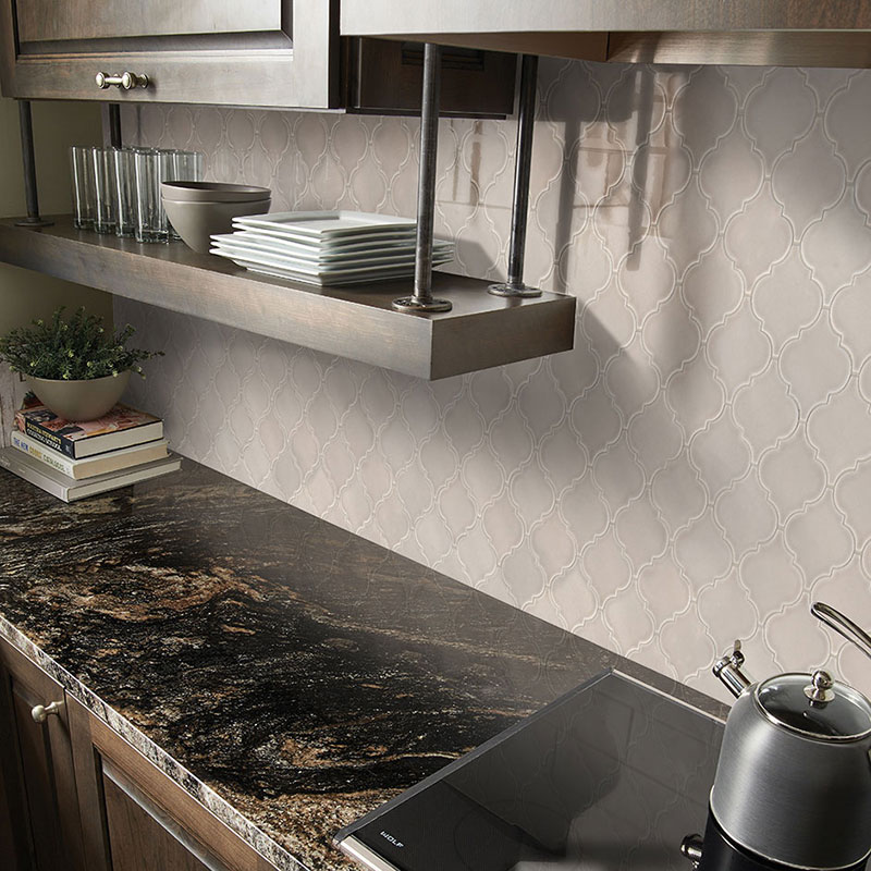 Graceful, elegant, and sophisticated, Portico Pearl Arabesque Tile features a classic, yet on-trend graphic pattern in a soothing neutral pearly beige hue. This backsplash tile is suggested for a variety of interior projects including for use as kitchen backsplash tile, shower surrounds, and other features throughout the property. Explore our inventory to find complementary natural stone or quartz slabs, and tiles to complete your project.