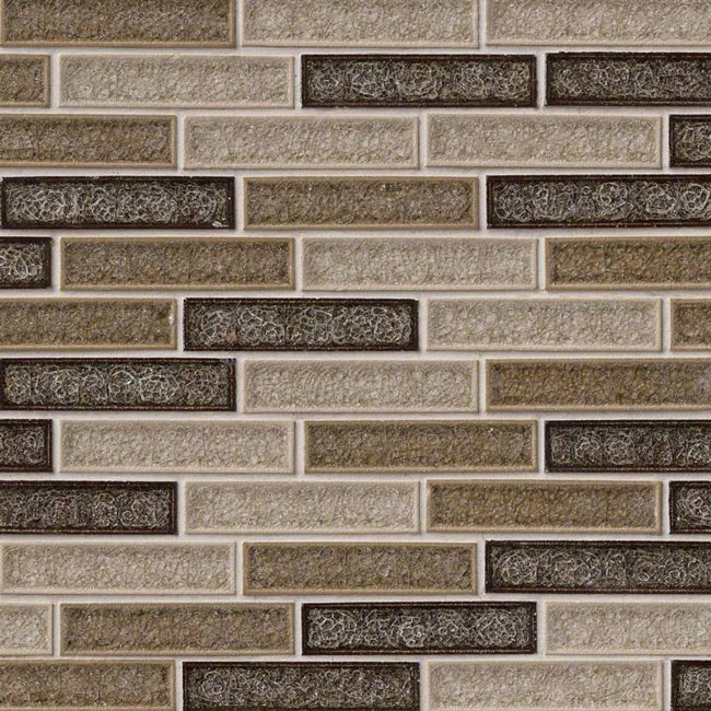 Pale almond accented with taupe, warm chocolate tones accented with ivory, and deep sable accented with alabaster meet in our Venetian Café mosaic design. These crackled glass tiles are an unparalleled choice if you’re looking for the perfectly appealing combination of high contrast and earth tones for your walls, floors, or countertops.