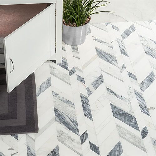 The Zayden collection brings together geometric precision and soft surface modulation in a porcelain tile format designed for both wall and floor applications. Its defining feature is a series of subtle, dimensional reliefs that form angular patterns—suggesting folded planes, architectural pleats, or faceted stonework. These linear motifs introduce movement and rhythm without relying on high contrast or decorative embellishment.